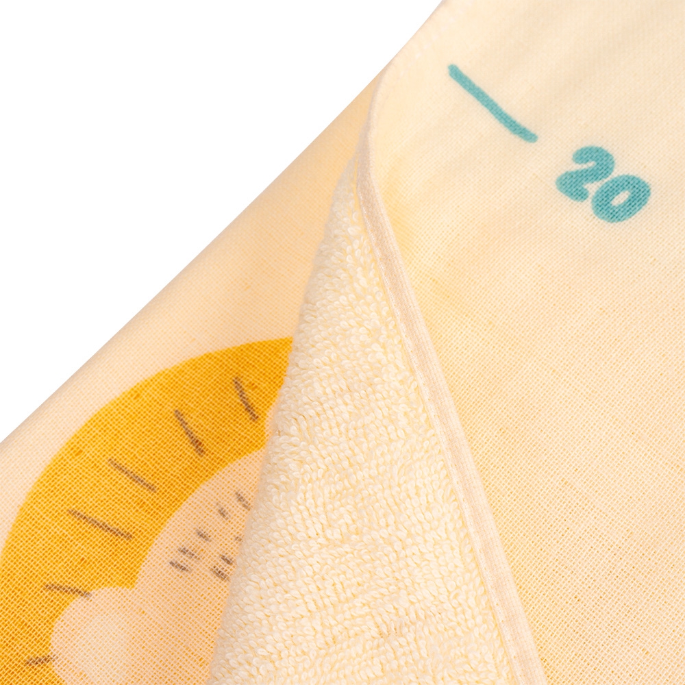 . Khăn có 2 lớp: 1 mặt gạc 1 mặt bông xốp cực kỳ phù hợp để làm khăn tắm hoặc khăn quấn cho bé;