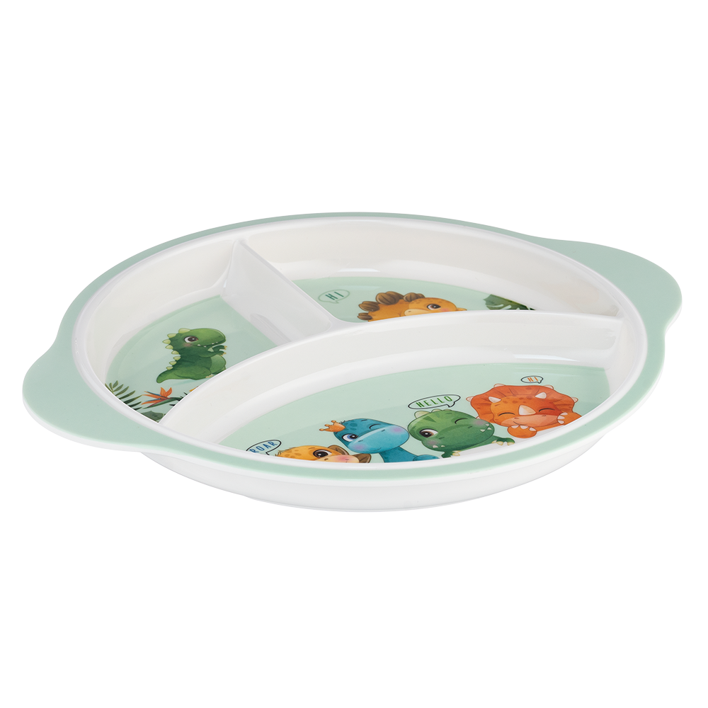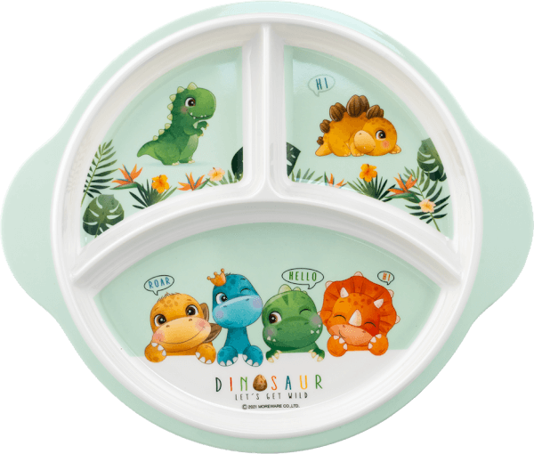 Khay ăn dặm 3 ngăn melamine cao cấp Moreware (W3028, tròn, khủng long)