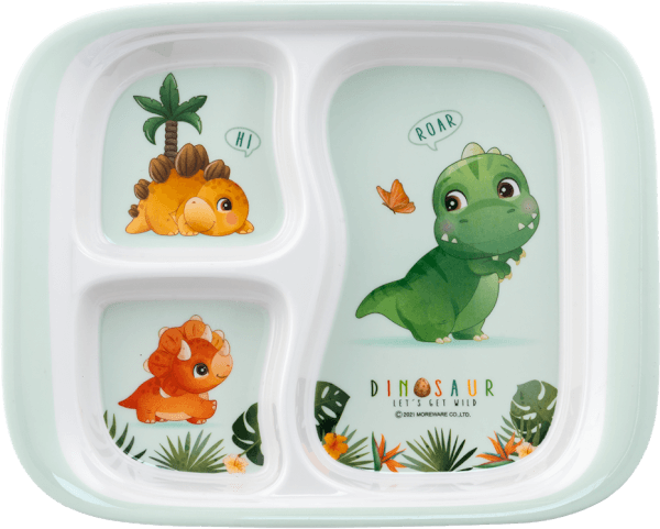 Khay ăn dặm 3 ngăn melamine cao cấp Moreware (W3063, vuông, khủng long)