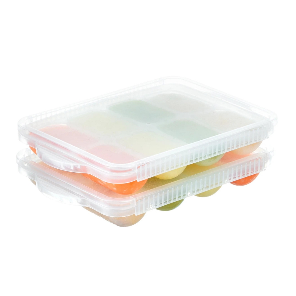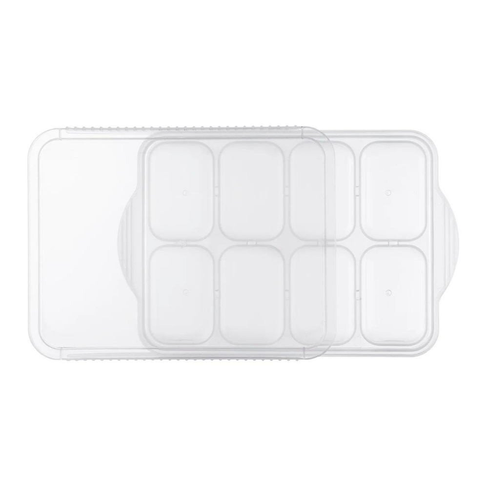 Khay chia làm nhiều ngăn nhỏ, giúp chia nhỏ thức ăn dặm: nước hoa quả, soup,… ra nhiều phần khác nhau để bảo quản đông lạnh, rất tiện lợi cho việc ăn dặm của bé.