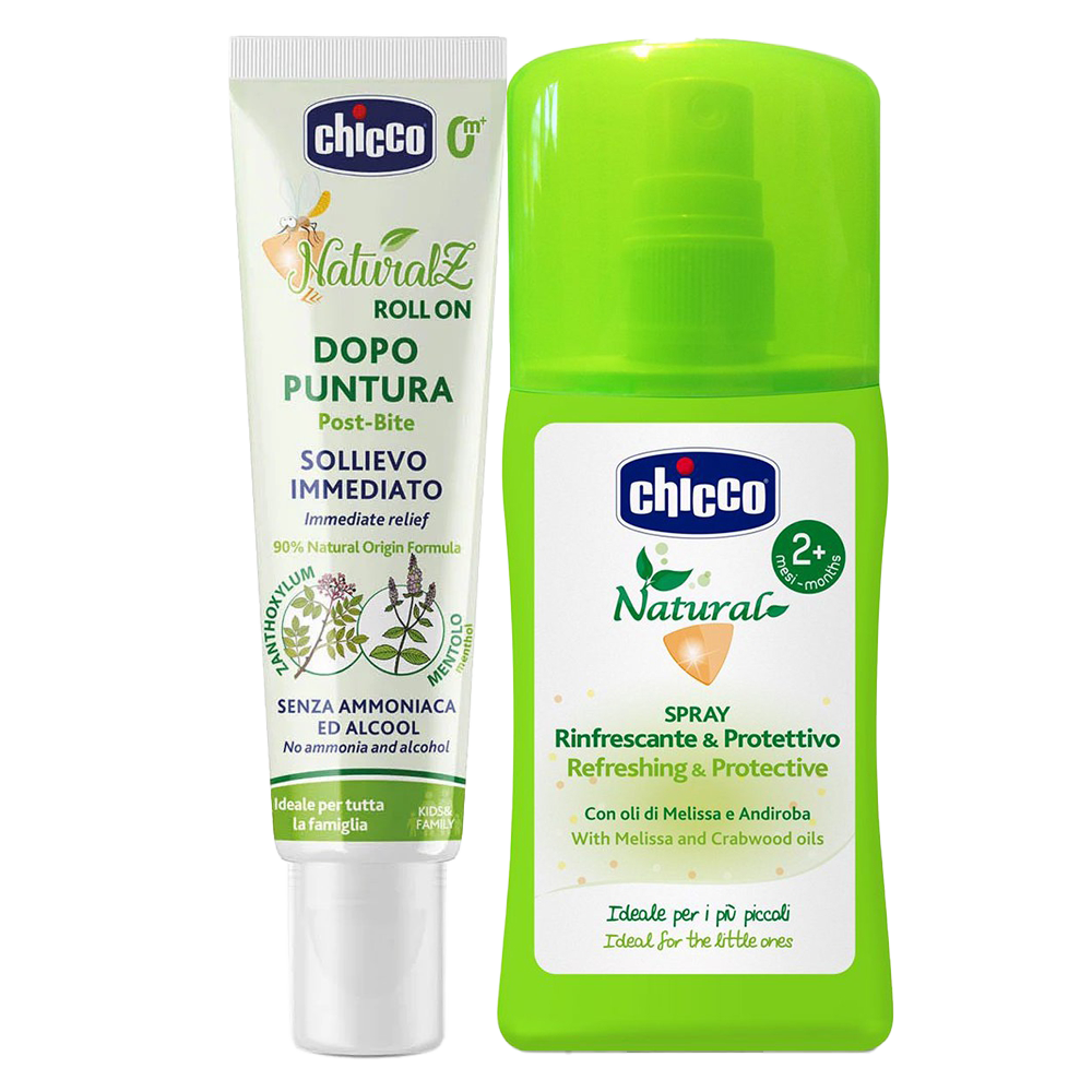 Combo Xịt đa năng xua muỗi Chicco 100ml và Lăn bôi vết muỗi đốt, côn trùng cắn Chicco 10ml
