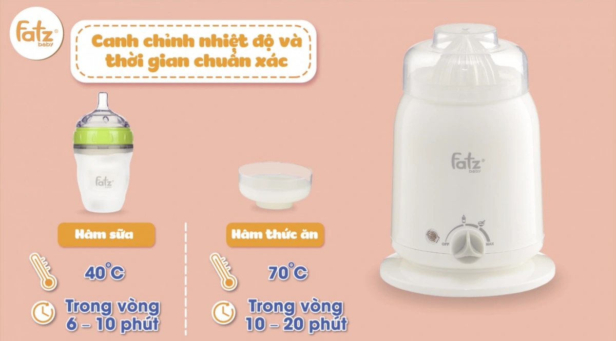 + Hâm sữa (40oC): trong vòng 6 – 10 phút