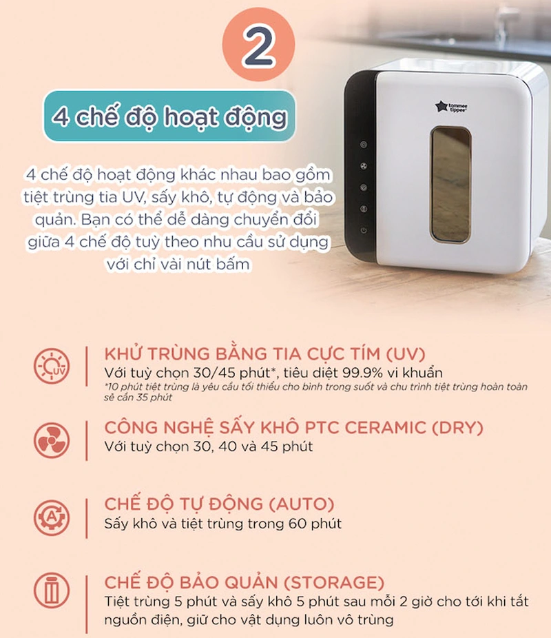 Tên sản phẩm: Máy tiệt trùng bằng tia UV và sấy khô Tommee Tippee