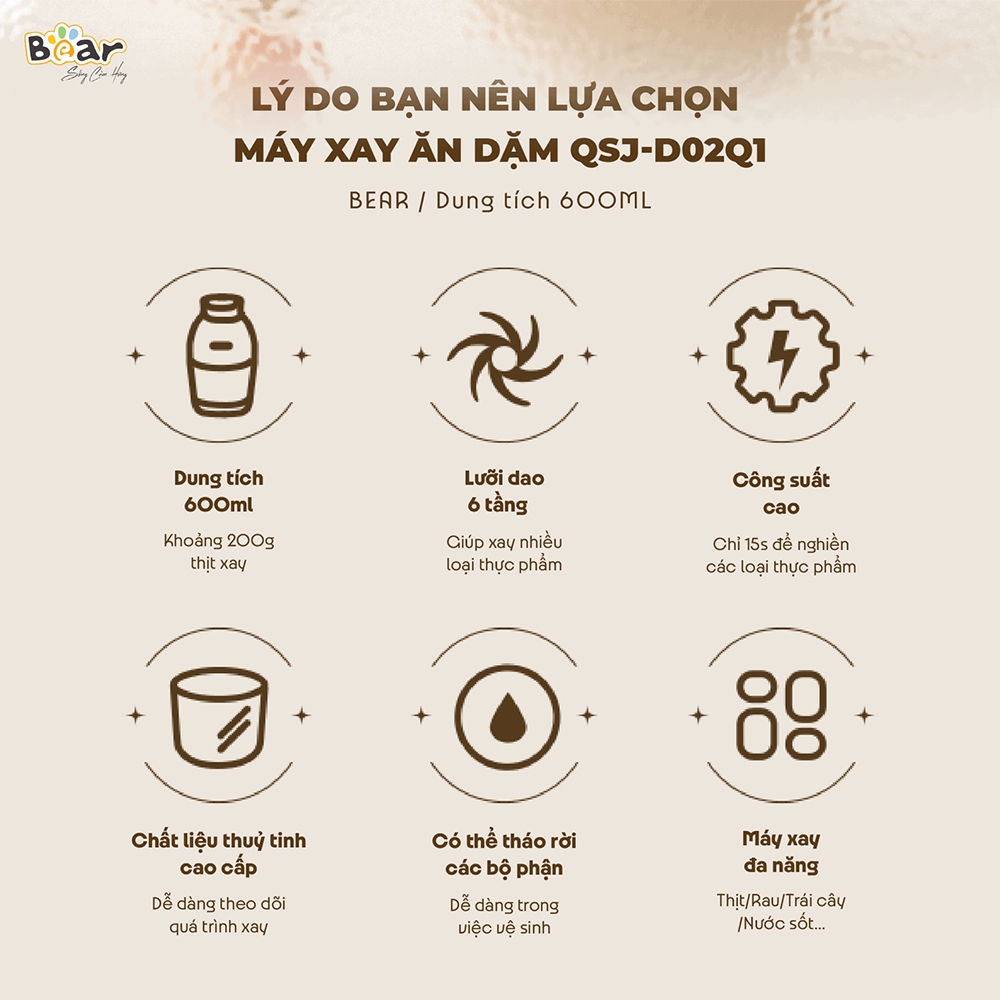 | Tên sản phẩm | Máy xay 0.6L Bear (QSJ-D02Q1) |