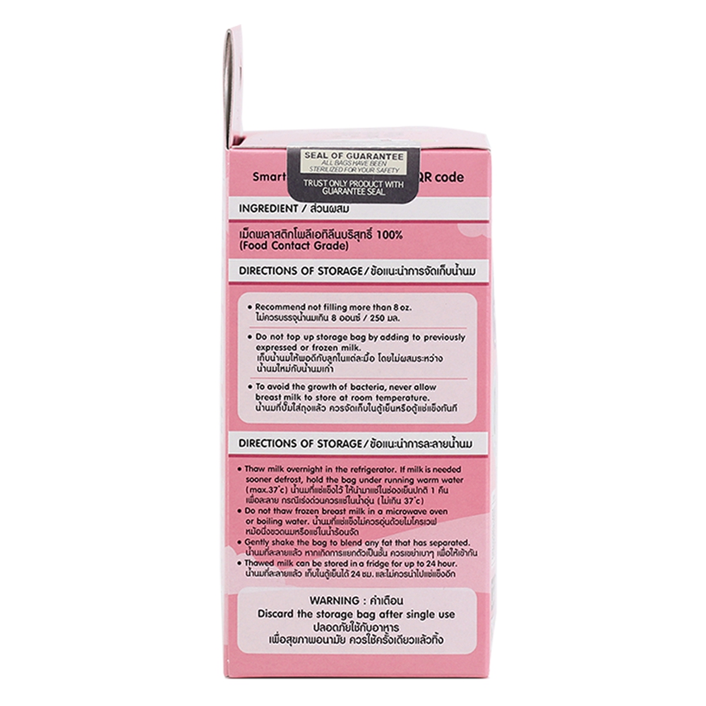 | Hướng dẫn bảo quản | Sữa mẹ sau khi cho vào túi cần được bảo quản ngay trong tủ lạnh/ tủ đông |