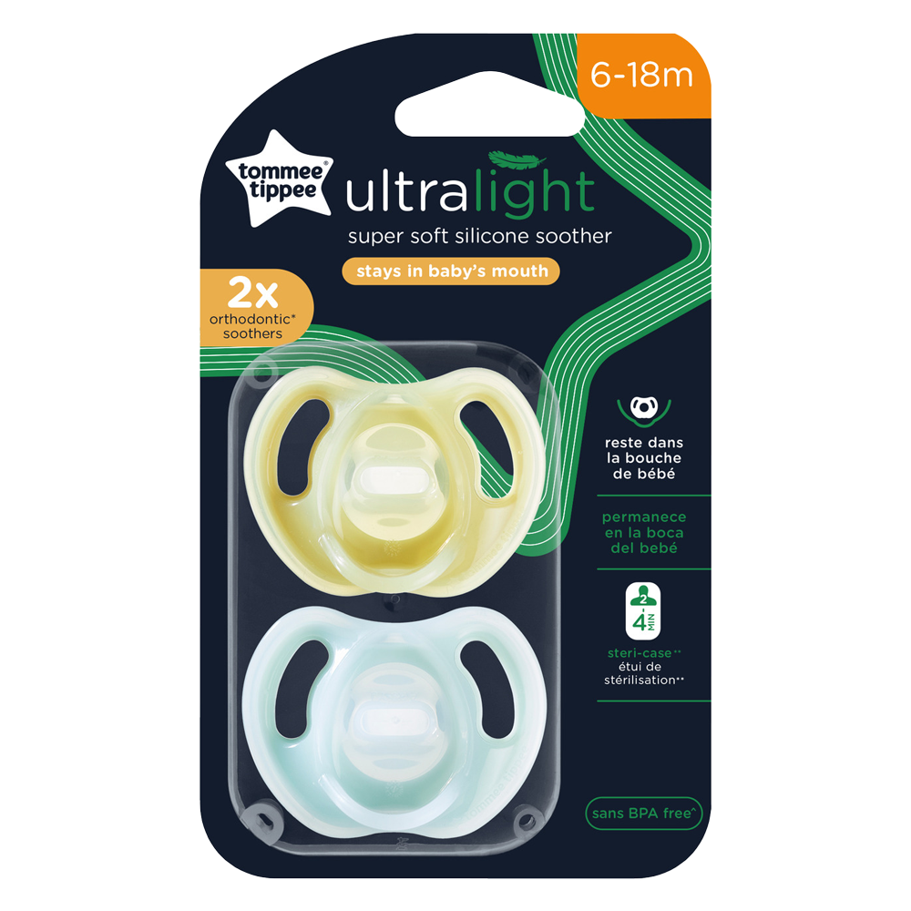 Ty ngậm silicon siêu nhẹ cho bé Tommee Tippee Ultra Light 6-18 tháng (vỉ đôi)