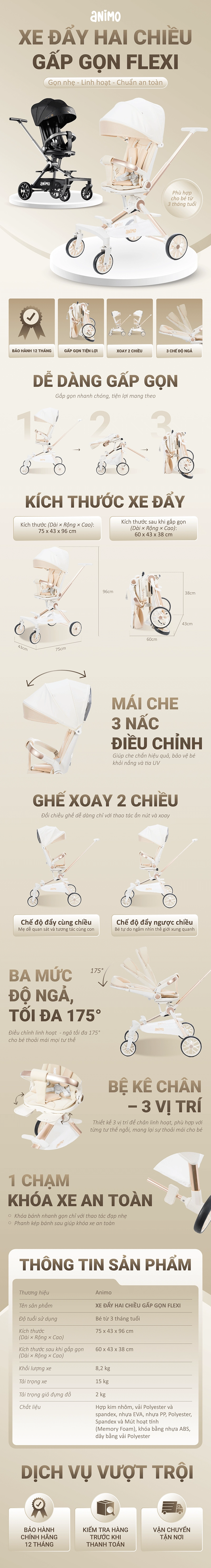 | Tên sản phẩm | Xe đẩy hai chiều gấp gọn Animo Flexi (Be) |