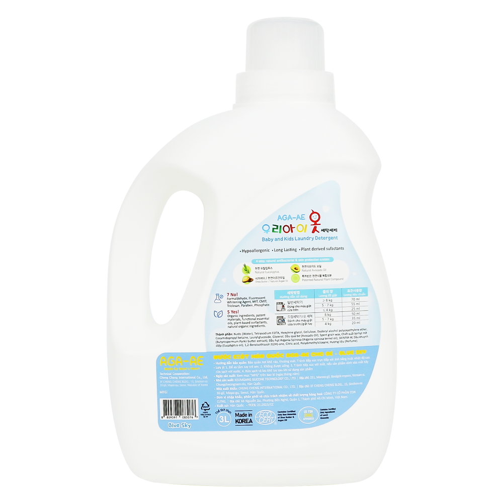 | Tên sản phẩm | Nước giặt Hàn Quốc Aga-ae cho bé - Blue Sky 3L |