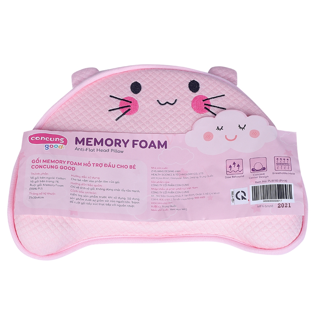 - Tên sản phẩm: Gối memory foam hỗ trợ đầu cho bé Con Cung Good (PUB103, Hồng)