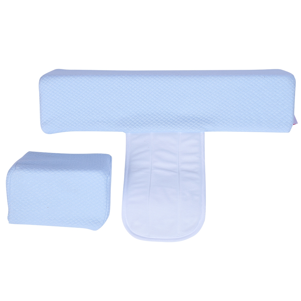 Gối ôm định vị giấc ngủ cho bé bao gồm 2 gối hình tam giác có kích thước khác nhau. Cái lớn là 46cm có thể chống lăn cho bé. Còn loại nhỏ 16cm, bé có tư thế ngủ thoải mái. Dây có thể điều chỉnh kích thước phù hợp với bé từ 0-10 tháng.