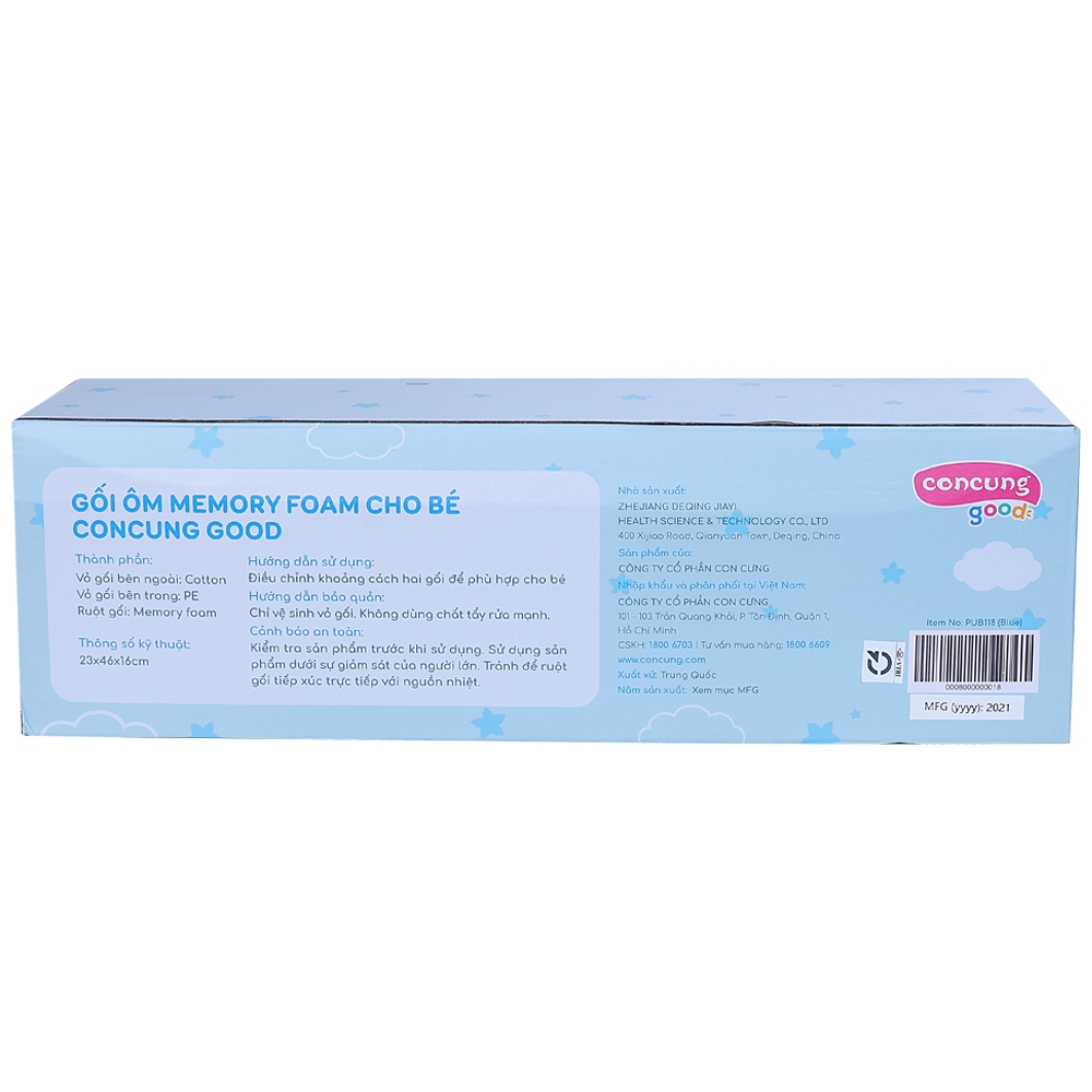 - Tên sản phẩm: Gối ôm memory foam cho bé ConCung Good (Xanh)