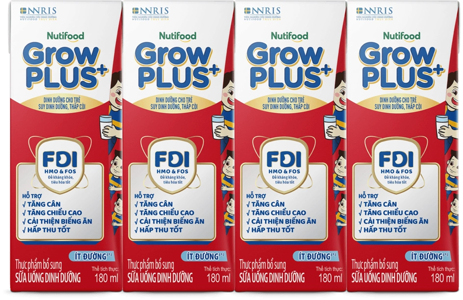 Nutifood GrowPLUs+ - Dinh dưỡng hiệu quả cho trẻ suy dinh dưỡng, thấp còi là sản phẩm của Nutifood với công thức FDI, xây dựng trên nền tảng "Đề Kháng khỏe, Tiêu Hóa tốt".