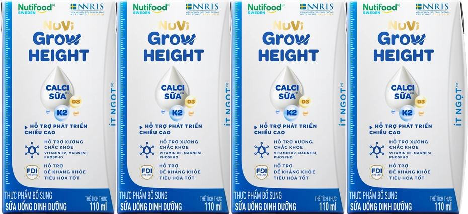| Tên sản phẩm | Sữa Bột Pha Sẵn NUVI GROW HEIGHT ít đường 110ML (lốc 4 hộp) |