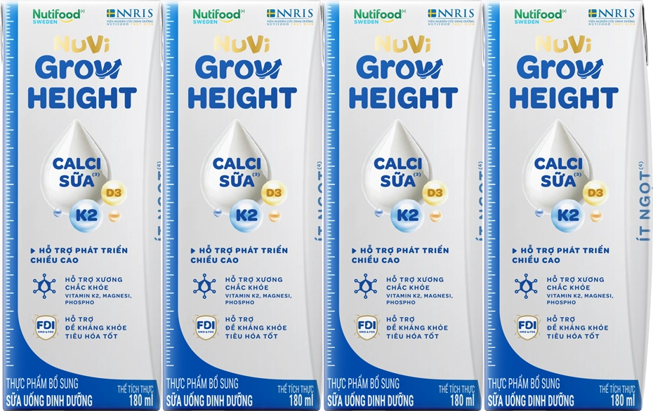 Sữa Bột Pha Sẵn NUVI GROW HEIGHT ít đường 180ML (lốc 4 hộp)