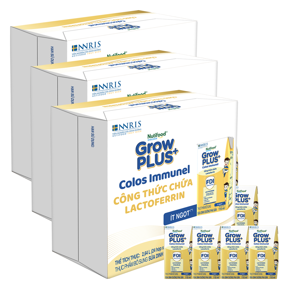 Combo 3 Thùng Sữa dinh dưỡng pha sẵn GrowPLUS+ Colos Immunel 110ml, lốc 4 hộp (Từ 1 tuổi)