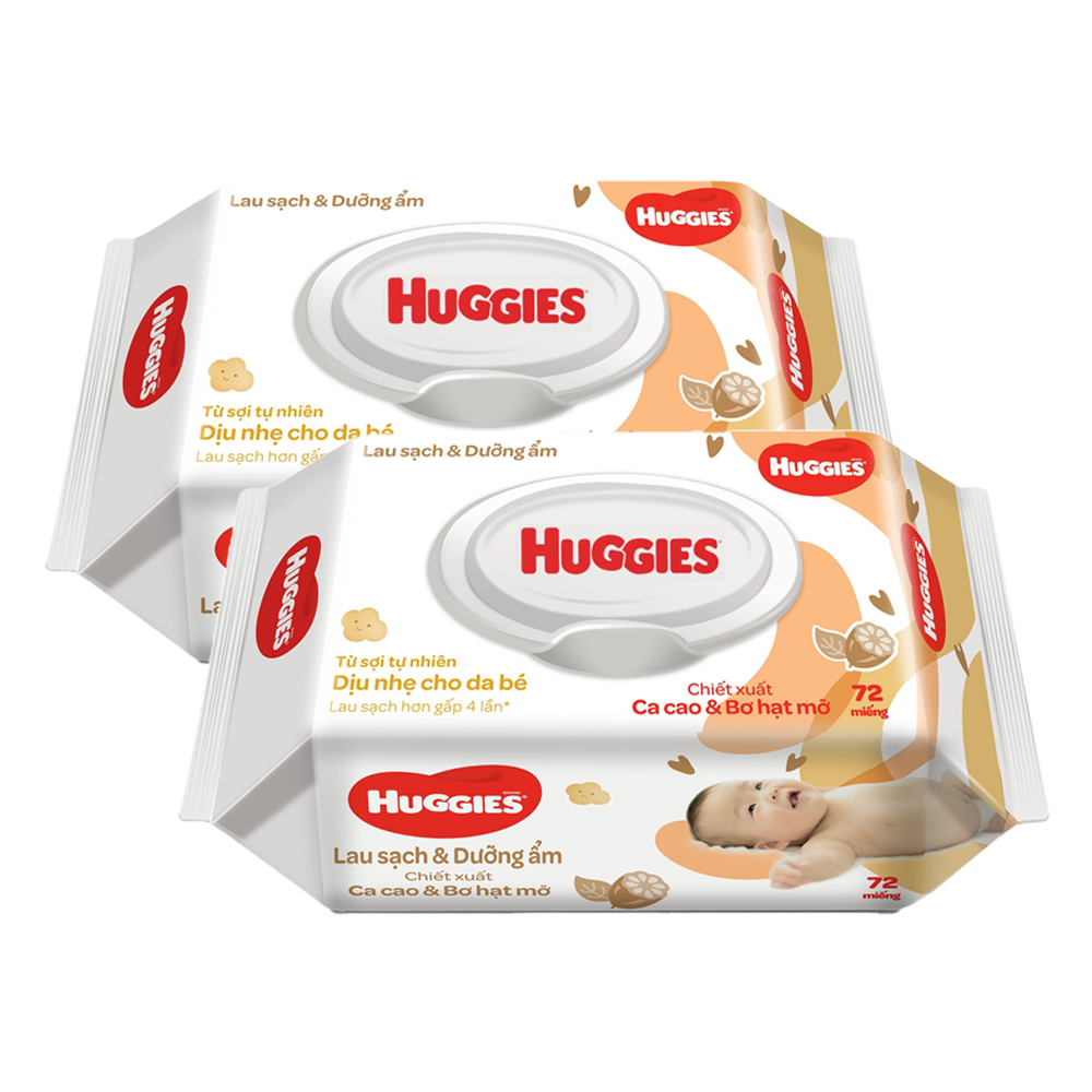 Combo 2 Khăn ướt cao cấp Huggies bơ hạt mỡ 72 Miếng