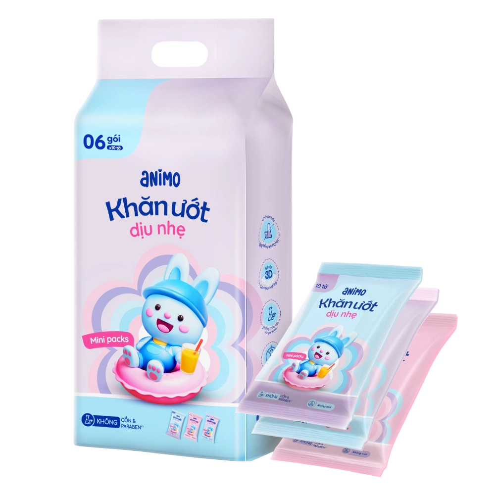 | Tên sản phẩm | Khăn Ướt Dịu Nhẹ Animo Minipacks (6 gói x 10 tờ) |