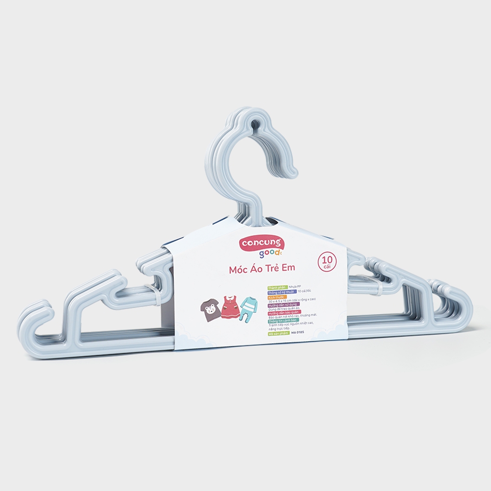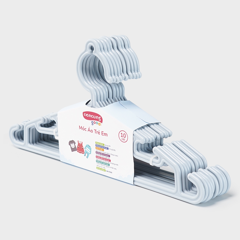 Móc áo mỏng trẻ em ConCung Good 185 - Màu xanh (10 cái/lốc)