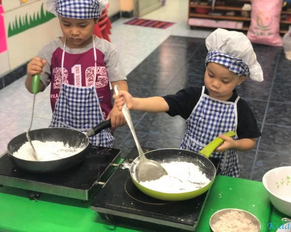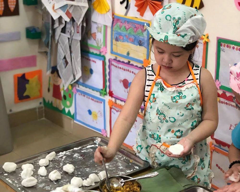Các bé mầm non Họa Mi được hướng dẫn nấu ăn (Nguồn: Internet)