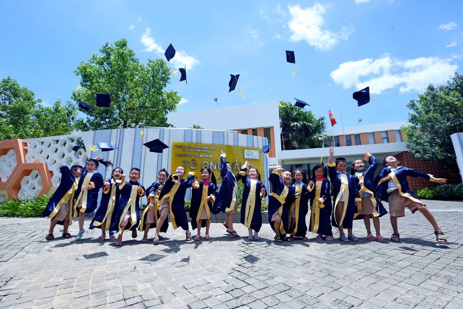 Các bé chụp ảnh trong lễ tốt nghiệp (Nguồn: Fanpage trường)