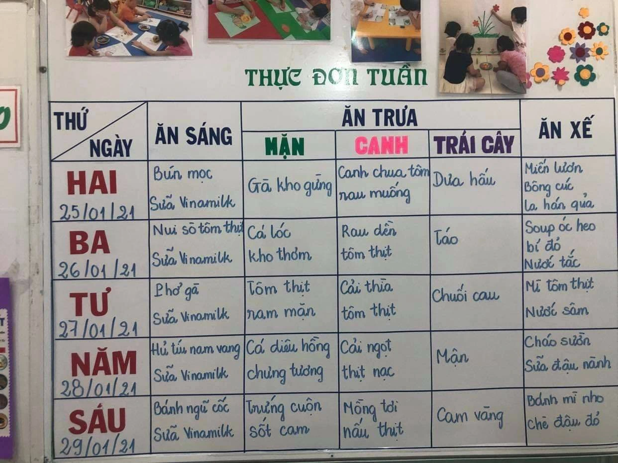Thực đơn theo tuần (Ảnh: Fanpage trường)