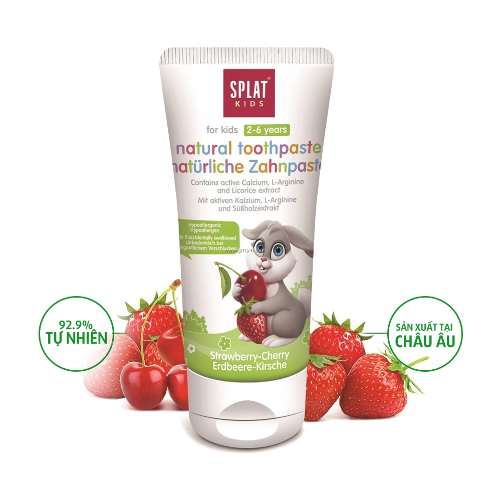- Splat Kids kem đánh răng tự nhiên mùi kem trái cây bé 2 - 6 tuổi - Sản phẩm kem đánh răng không cay với 98% thành phần tự nhiên từ trái cây khiến bé thích thú khi chải răng.