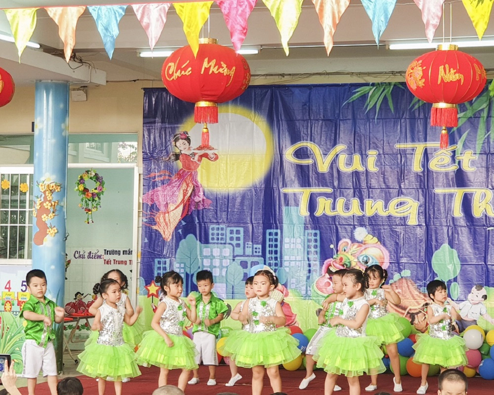 Bên cạnh đó, không gian sinh hoạt tại trường cũng rất rộng rãi, có sân khấu riêng ngoài trời để tổ chức các hoạt động ngoại khóa cho trẻ. Đội ngũ giáo viên của trường đều tốt nghiệp chuyên ngành sư phạm tại các trường Đại học, Cao đẳng với tình yêu nghề, lòng mến trẻ. Do đó, ba mẹ hoàn toàn có thể yên tâm khi gửi trẻ tại đây.