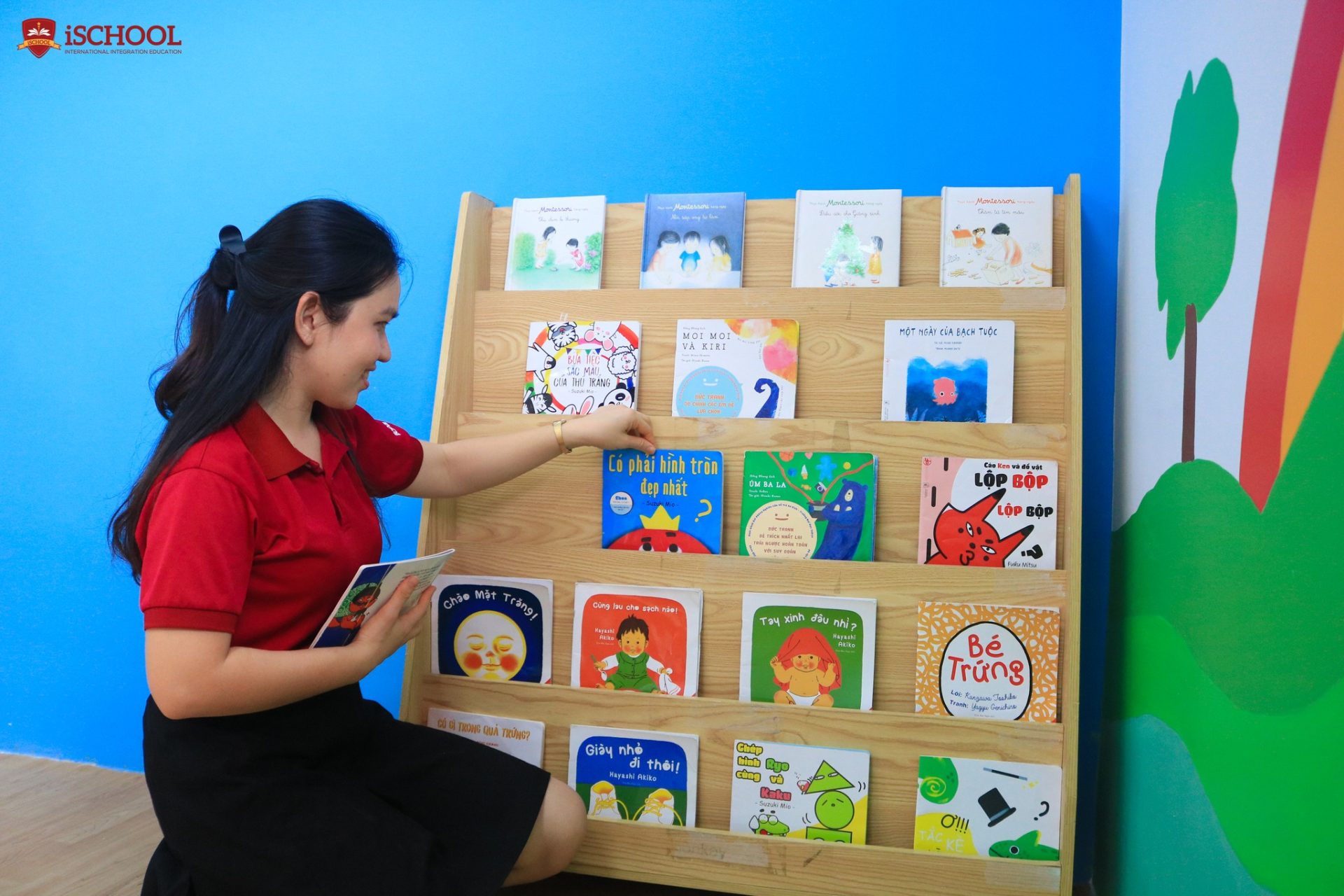 Đặc biệt, iSchool còn thiết kế vườn thực nghiệm sinh học giúp bé yêu có một nơi học tập từ thiên nhiên, được trải nghiệm từ những điều nhỏ nhất trong cuộc sống như: tưới cây, trồng rau,... Cùng với đó, thư viện cũng được bố trí không gian mở với rất nhiều tài liệu, sách, truyện bổ ích giúp các bé có nhiều hứng thú hơn trong việc phát triển tri thức riêng của mình.