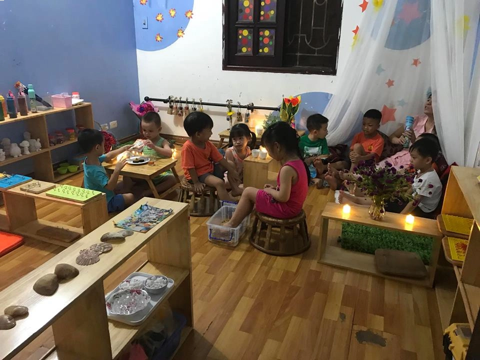 - Trường áp dụng phương pháp học Montessori - phương pháp được áp dụng tại nhiều quốc gia nhằm kích thích óc sáng tạo, khai phá tiềm năng của bé.