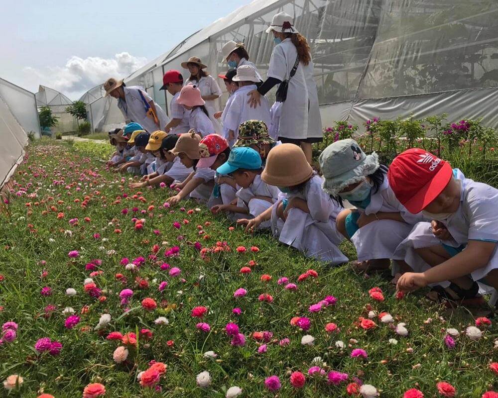 Hình ảnh các bé thăm quan vườn rau sạch (Nguồn: FB Trường)
