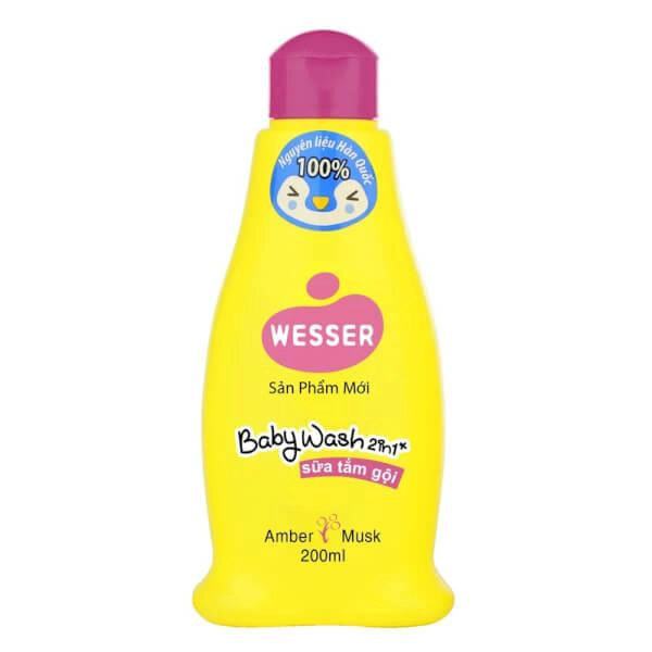 Sữa tắm gội Wesser. Sữa tắm gội Wesser có độ pH thấp, chứa các thành phần an toàn, phù hợp, an toàn cho làn da bé