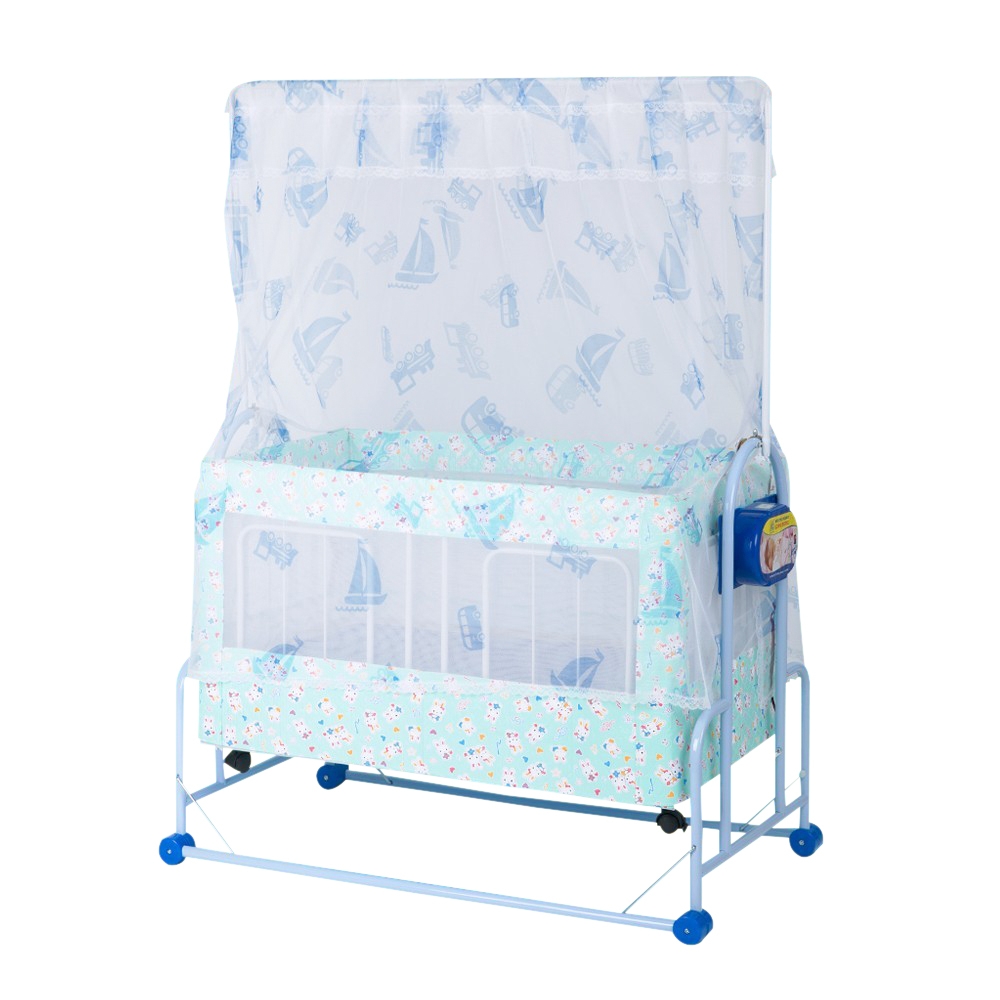 Nôi nằm Cỡ đại. Vách bằng lưới thoáng mát. Tấm tầng nằm thoáng chống hăm lưng, căng phẳng chống cong lưng. Tầng đáy là ván ép chịu lực, chắc chắn cho bé ngồi chơi. Kèm 4 bánh xe để di chuyển nhẹ nhàng, tiện dụng. Phần cũi cao rộng, an toàn cho bé.