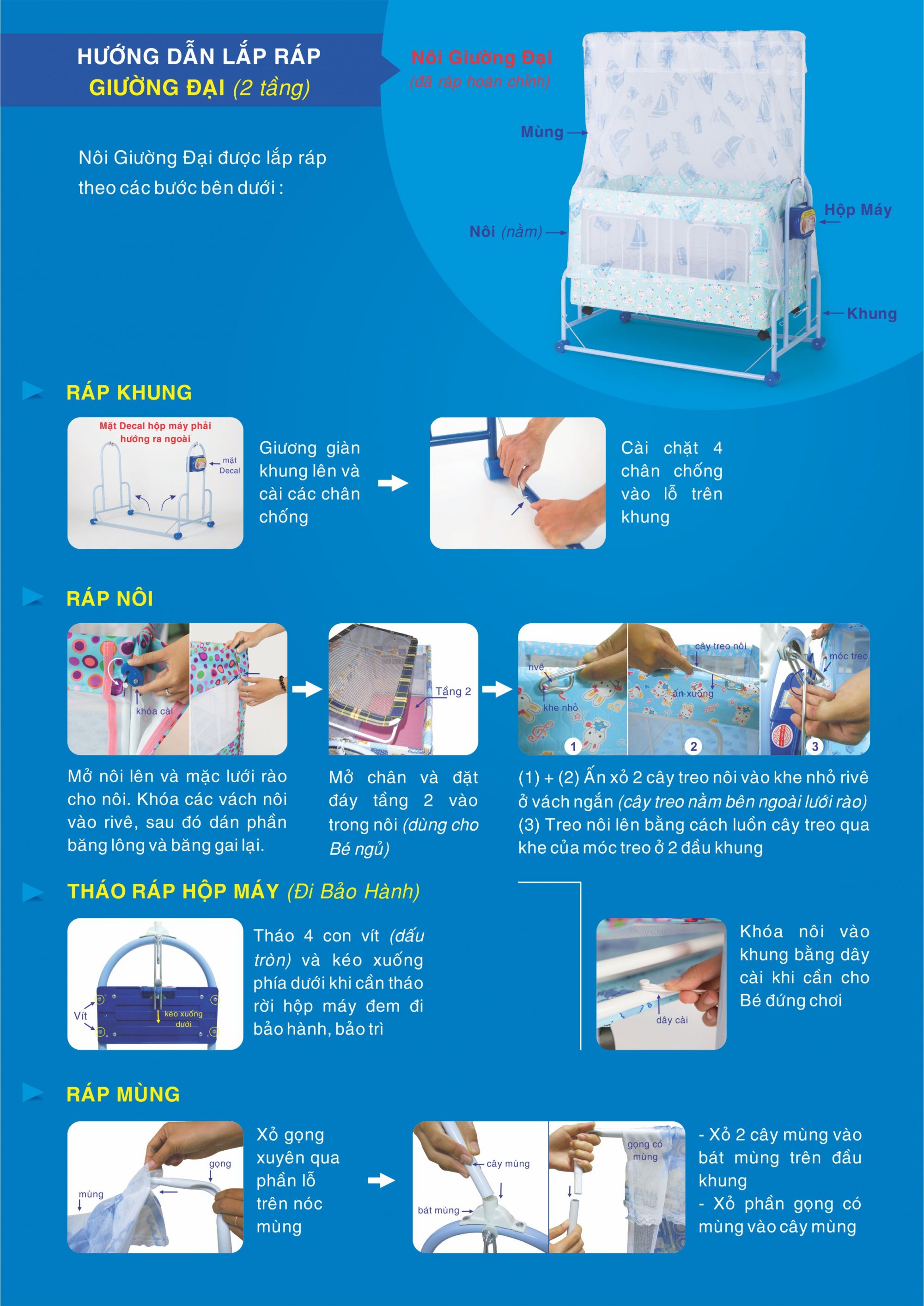 Hướng dẫn cách lắp ráp Nôi giường đại 2 tầng tự động Long Hưng GD 32: