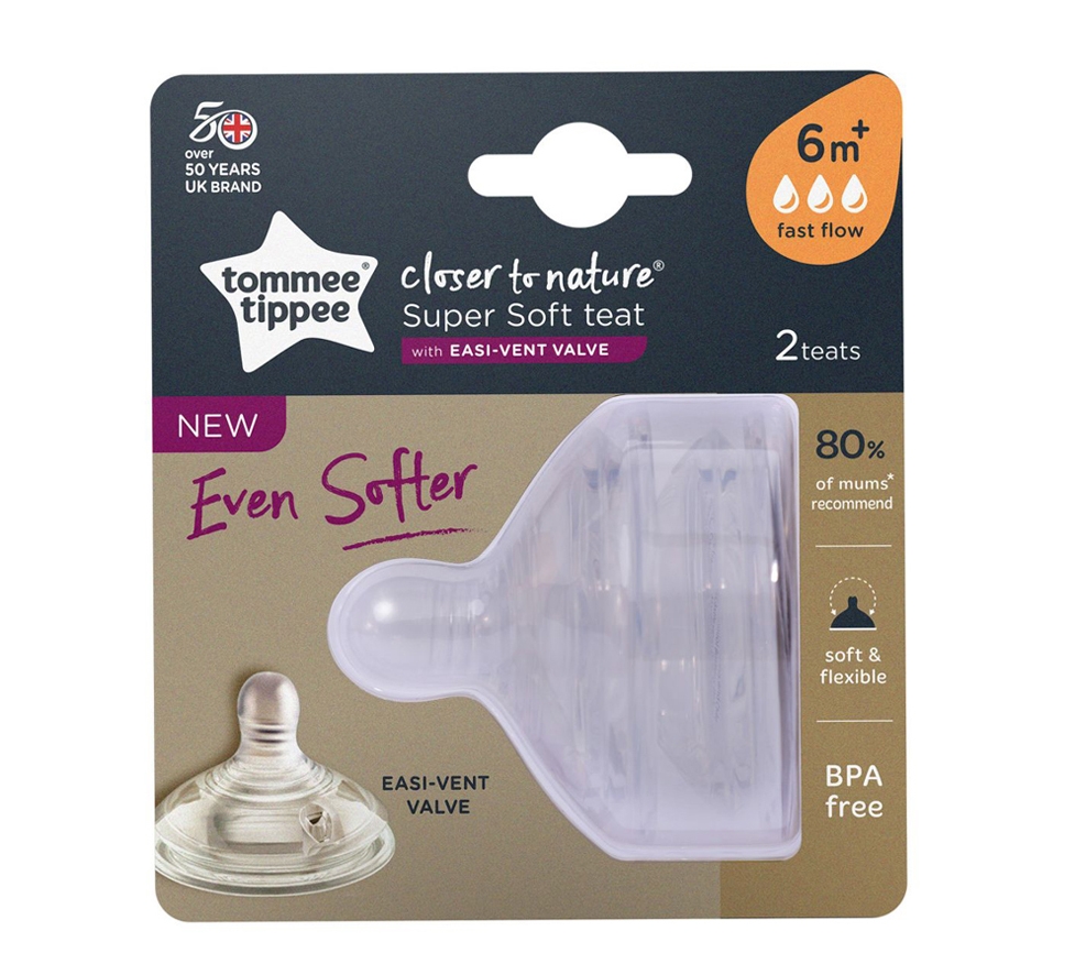 Núm ty cho bé Tommee Tippee Closer to Nature Fast Flow từ 6 tháng (vỉ đôi)