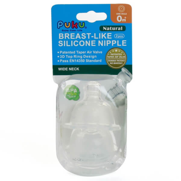 Vỉ 2 núm ty PUKU silicone thay bình sữa cổ rộng size S, P10245