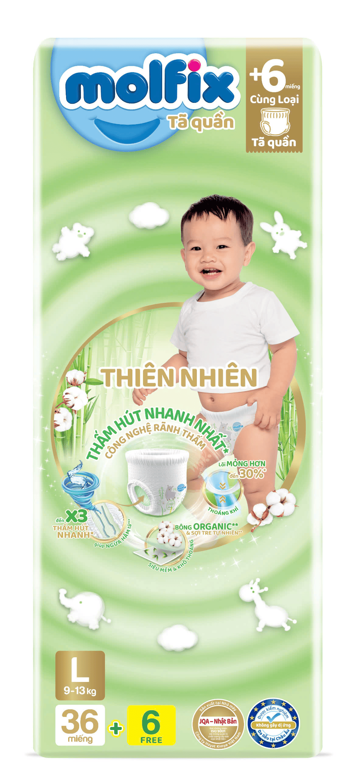 QT Molfix - Bỉm tã quần Molfix thiên nhiên Jumbo size L