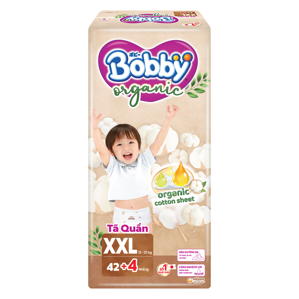 Bobby Organic XXL42 có khả năng thấm hút vượt trội, chống tràn hiệu quả, cho bé luôn khô thoáng và tự tin vận động. Bề mặt siêu mềm mịn cùng lớp lưng thun co giãn linh hoạt, ôm vừa vặn cơ thể bé mà không để lại vết hằn. Sản phẩm phù hợp cho bé từ 15kg trở lên, đáp ứng nhu cầu vận động nhiều ở giai đoạn lớn khôn.