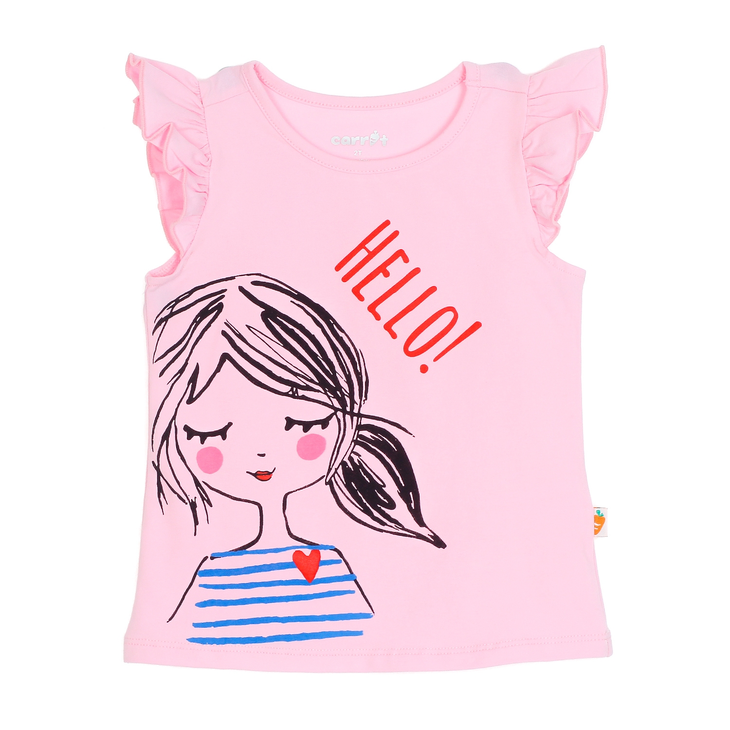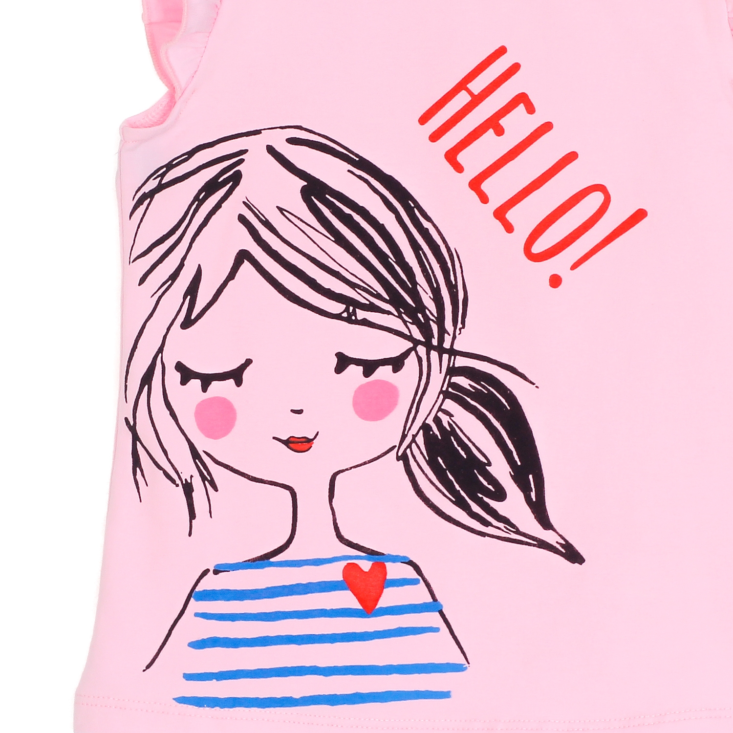 - Màu hồng phấn nhã nhặn và kiểu áo ngắn tay phù hợp cho bé mặc trong tiết trời mùa hè nóng bức