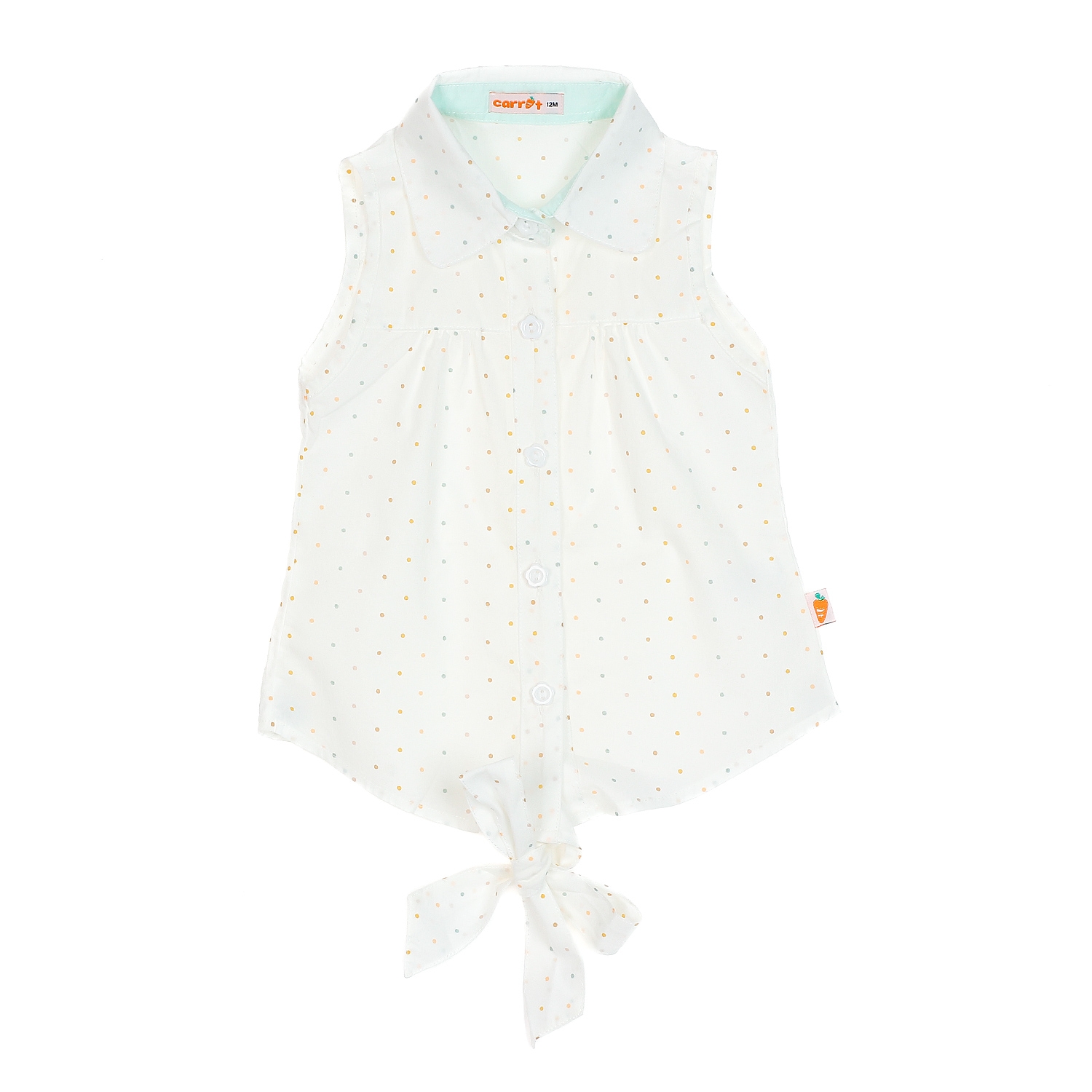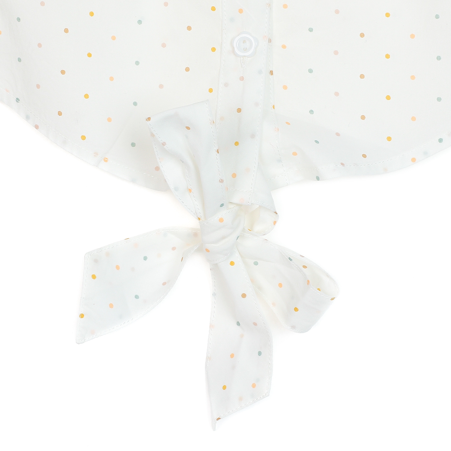 Áo sơ mi bé gái họa tiết chấm bi, thắt nơ lai áo nữ tính và đáng yêu. Các bé sẽ vô cùng thích thú khi được mẹ mua và diện cùng quần short jean hoặc kaki đấy.