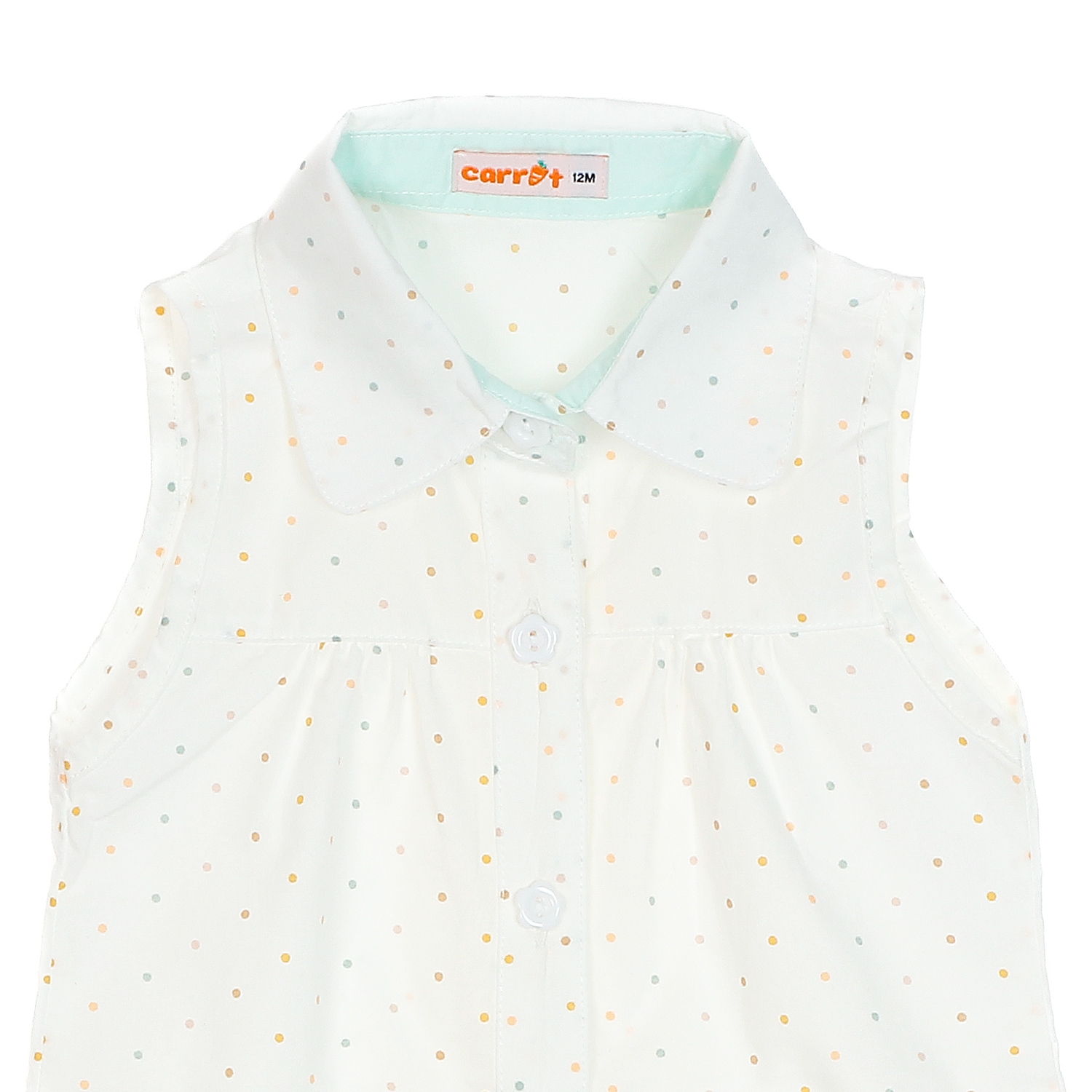 - Màu trắng họa tiết chấm bi nhẹ nhàng, nền nã, sẽ giúp mẹ có thể dễ dàng phối phụ kiện kèm theo cho bé hơn.
