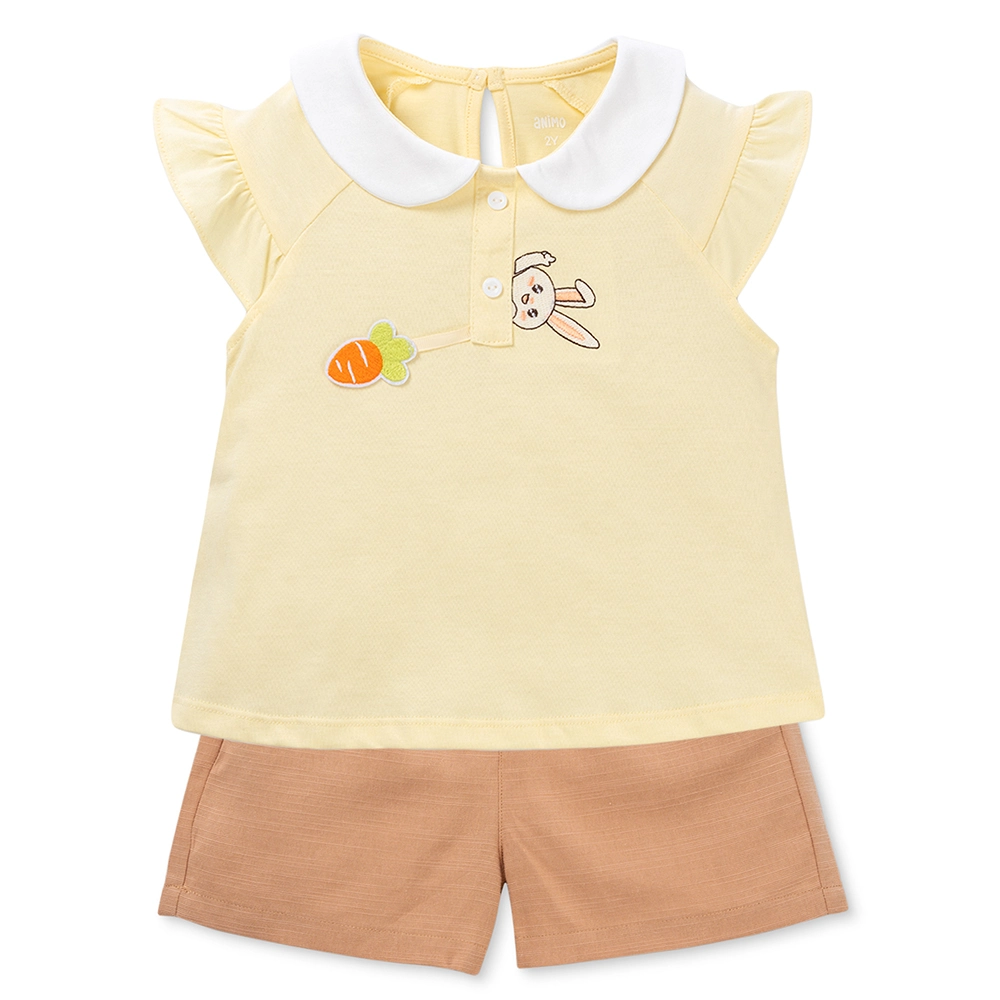 Bộ bé gái ngắn Animo TX1225043 (1-6 tuổi, Vàng-nâu) mang phong cách nhẹ nhàng, nữ tính, phù hợp cho bé mặc đi chơi, ở nhà hoặc dạo phố trong những ngày thời tiết ấm áp.
