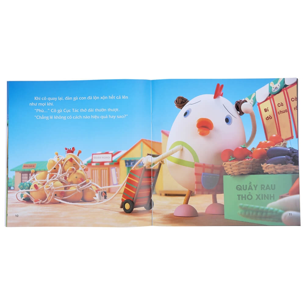 > Nhân vật chính là cô gà Cục Tác và đàn con lông vàng được mô phỏng cực kỳ ngộ nghĩnh, sinh động giúp kích thích giác quan và trí tưởng tượng của trẻ
