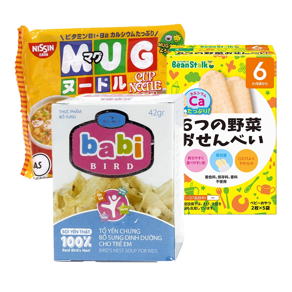 Combo 1 Mì Mug và 1 Yến Babi Bird - 42g và 1 Bánh gạo 6 loại rau củ Bean Stalk, 20g