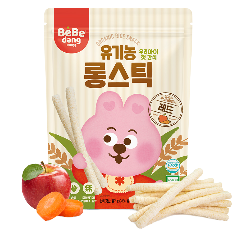 | Tên sản phẩm | Bánh Gạo Lứt Hữu Cơ Bebedang Hình Que Dài Vị Táo & Cà Rốt |