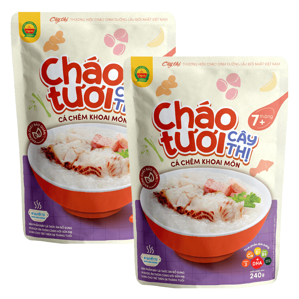 Cháo tươi Cây Thị cá chẽm khoai môn là sản phẩm dành cho bé từ 7 tháng tuổi.