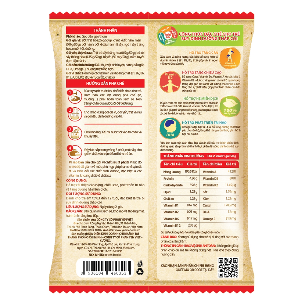 Cháo Yến Trẻ Em YenViet Nest Grow - Bò Bằm Bó Xôi 50g