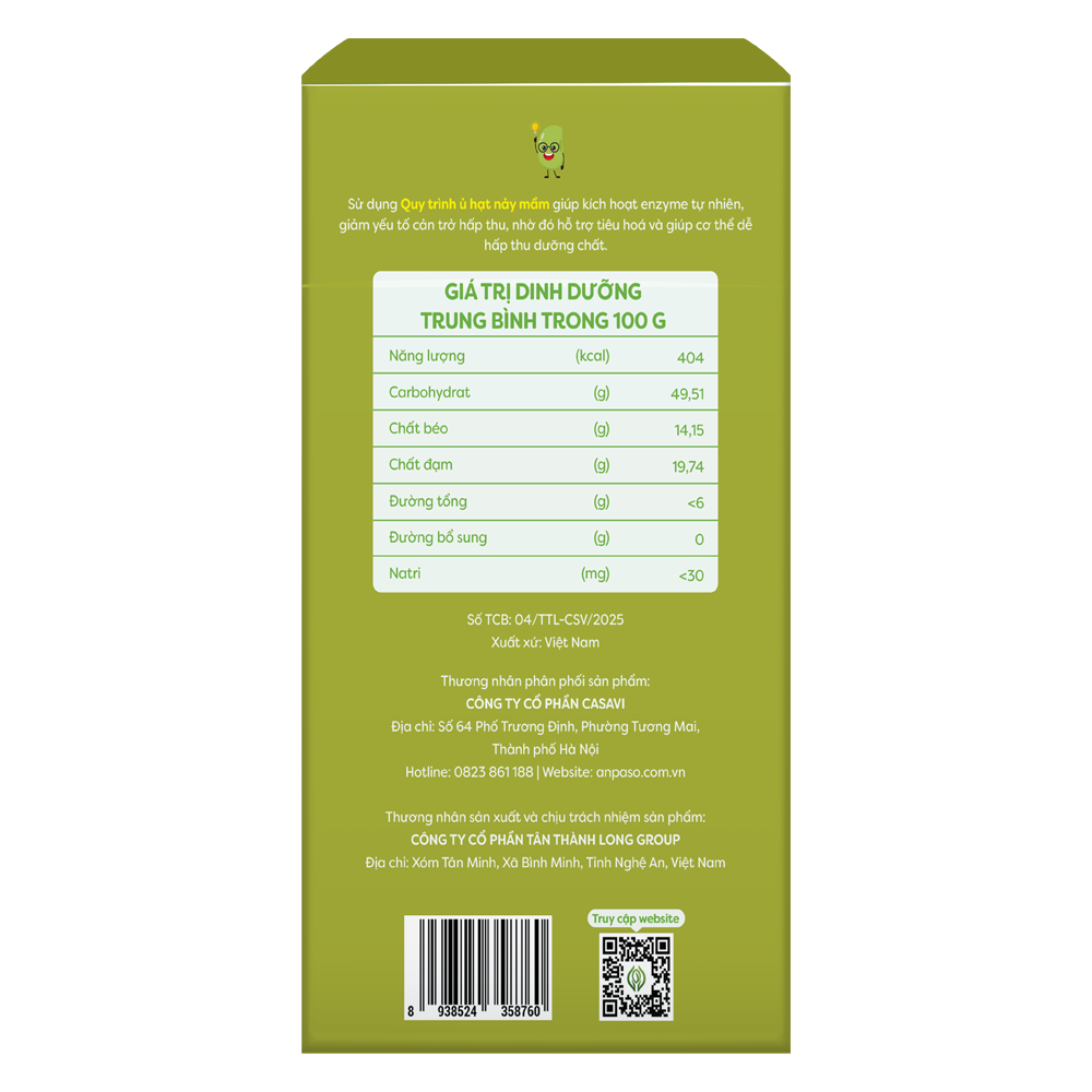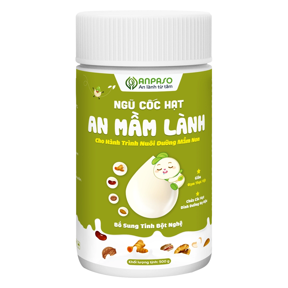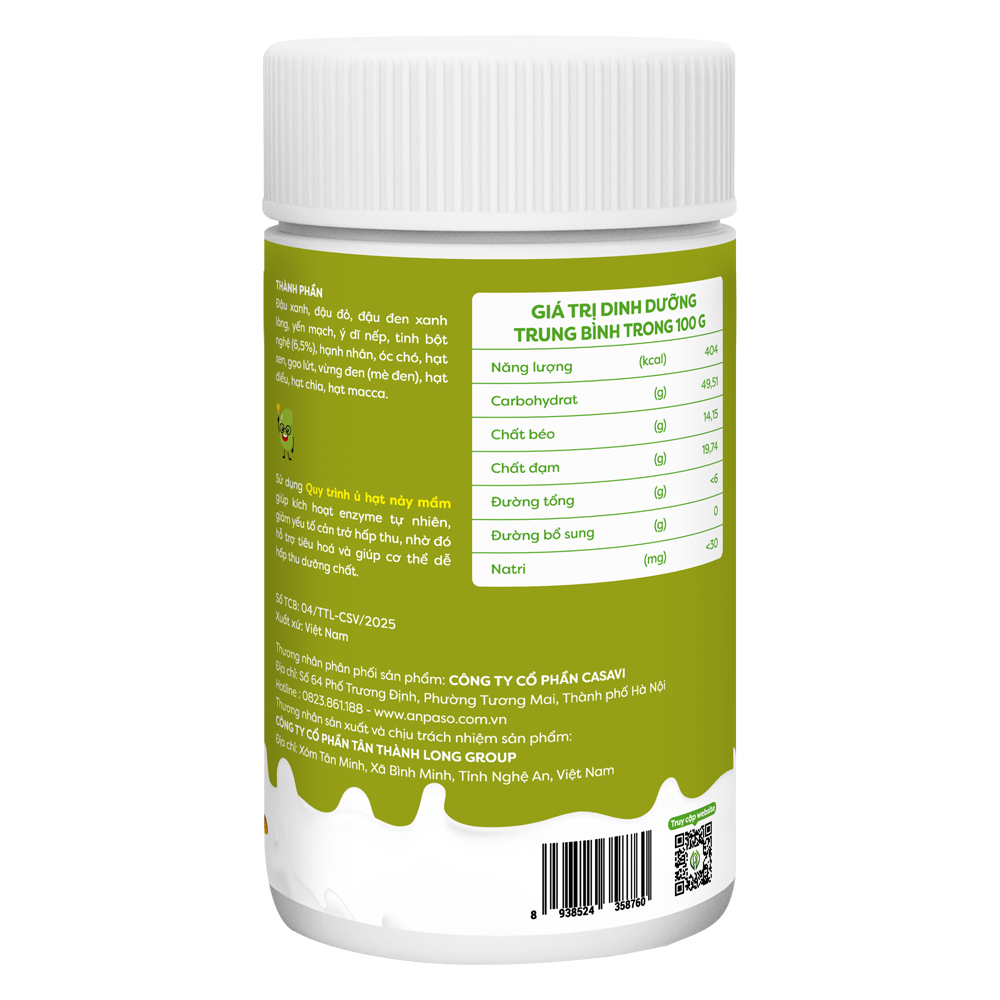Ngũ cốc Dưỡng mầm xanh Anpaso – nguồn dinh dưỡng lành mạnh từ 14 loại hạt nảy mầm, giúp bổ sung năng lượng, hỗ trợ tiêu hóa và chăm sóc sức khỏe toàn diện mỗi ngày.