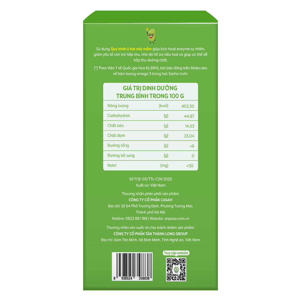 | Tên sản phẩm | Ngũ cốc hạt Dưỡng mầm xanh Anpaso 500g |