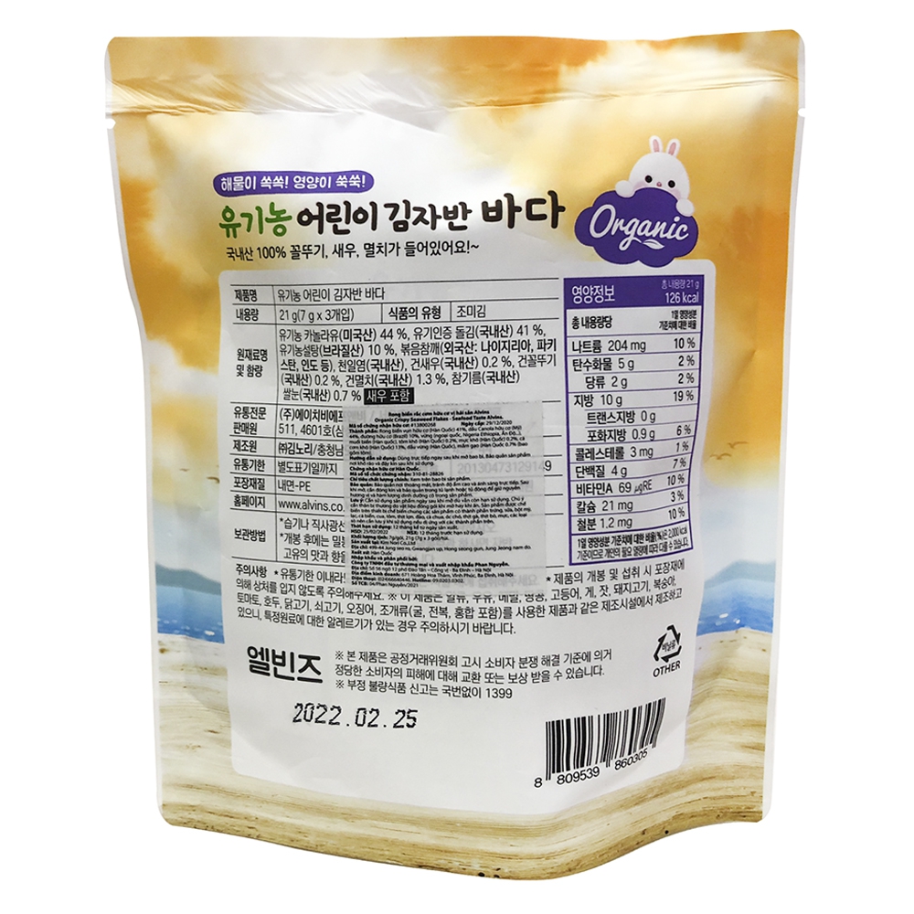 Tên sản phẩm: Rong biển hữu cơ rắc cơm vị hải sản Alvins