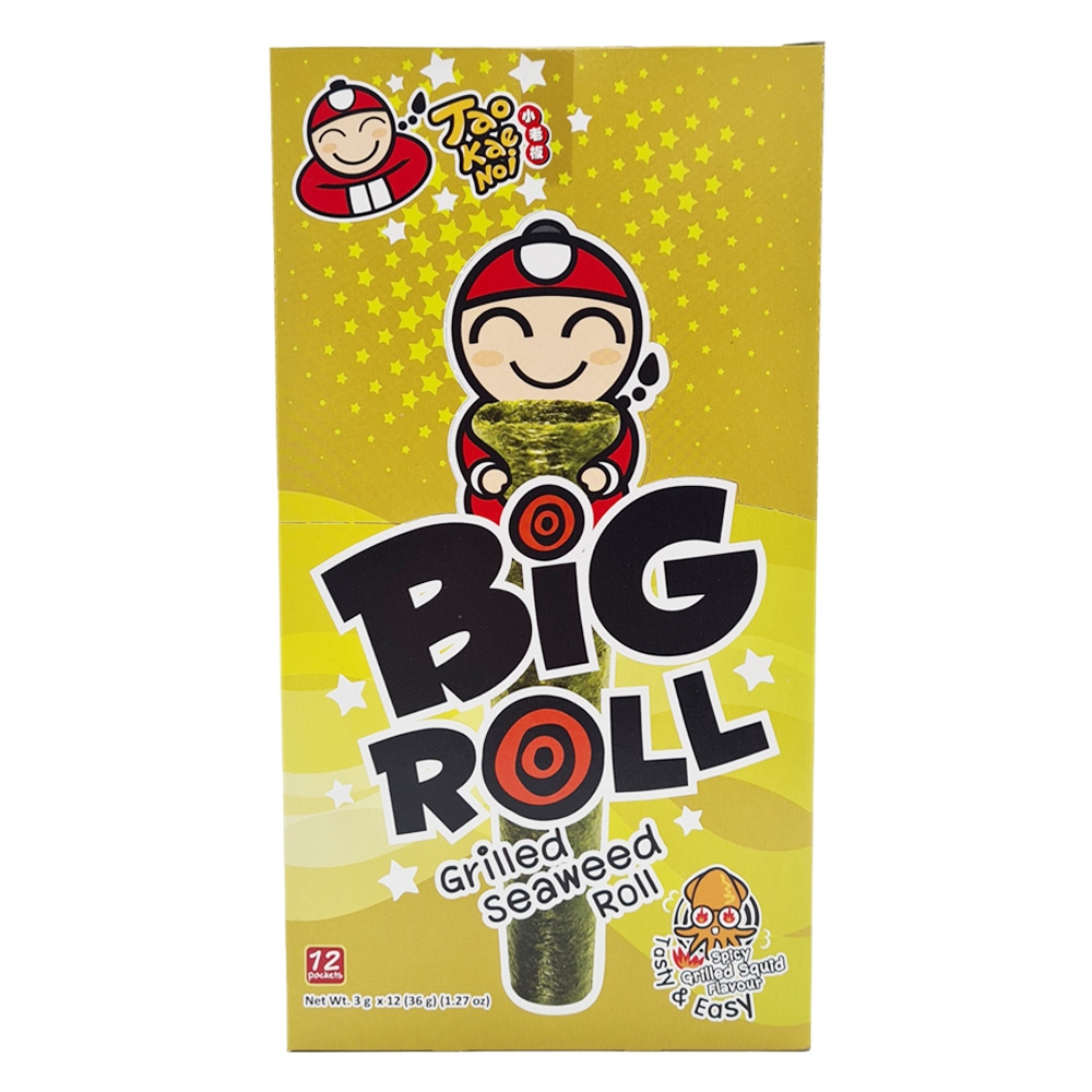 Bánh Snack rong biển nướng giòn Taokaenoi Big Roll vị mực (12gói/hộp)
